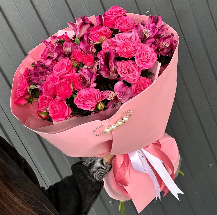 Букет из кустовых роз и альстромерий — это удивительное сочетание, которое оставляет незабываемое впечатление. Кустовые розы, обладая нежными и яркими оттенками, придают композиции романтический и утонченный вид. Альстромерии, с их многообразием цветов и необычными формами, дополняют букет, внося в него элементы экзотики и свежести.