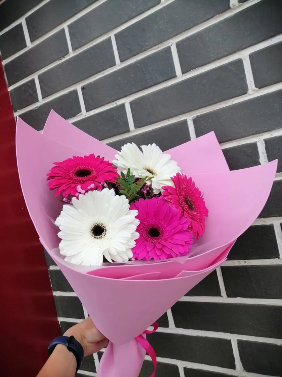 - Стандарт - гербера - 5 шт., упаковка, лента