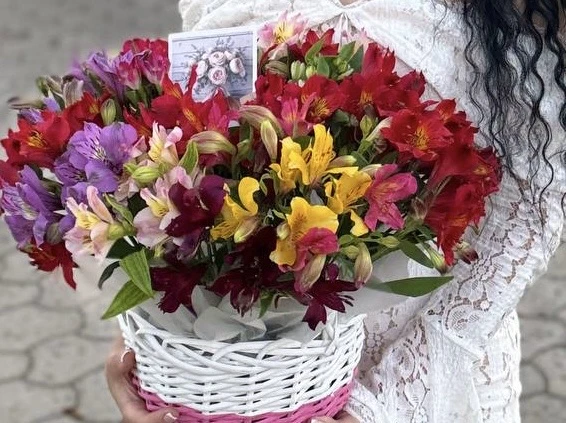 Альстромерии микс , оазис,корзина |